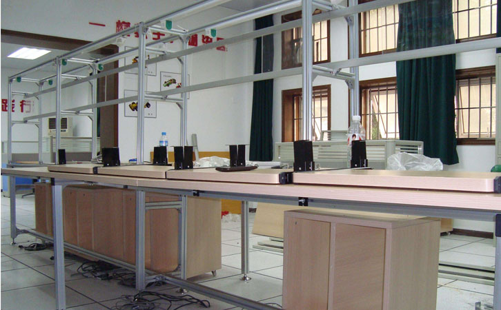 1、在組裝前,先將切割好的鋁型材及工業(yè)鋁材框架配件按照規(guī)格用途分類(lèi)擺好;