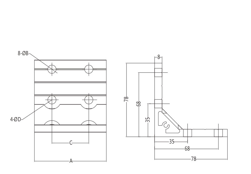 直角支架是從擠壓型材上截取料段,經(jīng)鉆孔加工而成。表面銀白陽(yáng)極氧化(端面未氧化),連接強(qiáng)度高。靈活性和通用性能好,安裝簡(jiǎn)單方便。主要用于型材的T型、L型、或十字連接。注:可根據(jù)客戶(hù)需要進(jìn)行特殊加工。