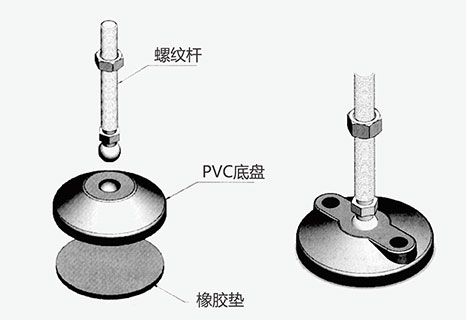 蹄腳是各種工業(yè)鋁型材支架及設備通用的配件,具有支撐、防震等作用,螺桿可調(diào)節(jié)高度。