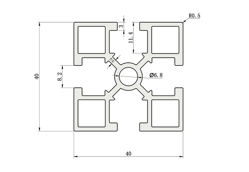 適用于應(yīng)力及強度較大的框架組合結(jié)構(gòu),它的外型采用直角過渡,表面經(jīng)過陽極氧化處理,高雅美觀并抗腐蝕,它通常采用M6X20高強度專用螺栓的內(nèi)部連接方式,堅固而又可靠,是工業(yè)框架應(yīng)用較為廣泛的型材之一。