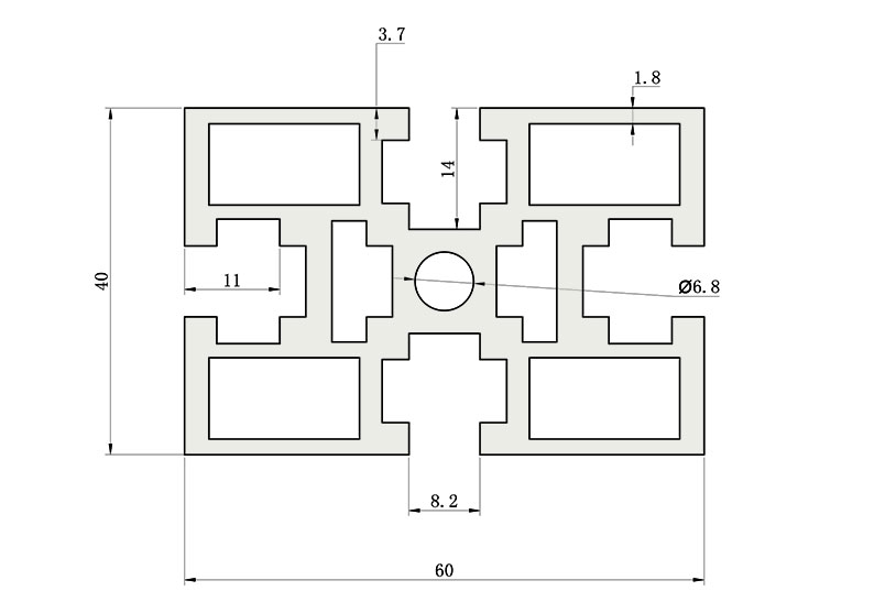 適用于應(yīng)力及強度較大的框架組合結(jié)構(gòu),它的外型采用直角過渡,表面經(jīng)過陽極氧化處理,高雅美觀并抗腐蝕,它通常采用M6X20高強度專用螺栓的內(nèi)部連接方式,堅固而又可靠,是工業(yè)框架應(yīng)用較為廣泛的型材之一。