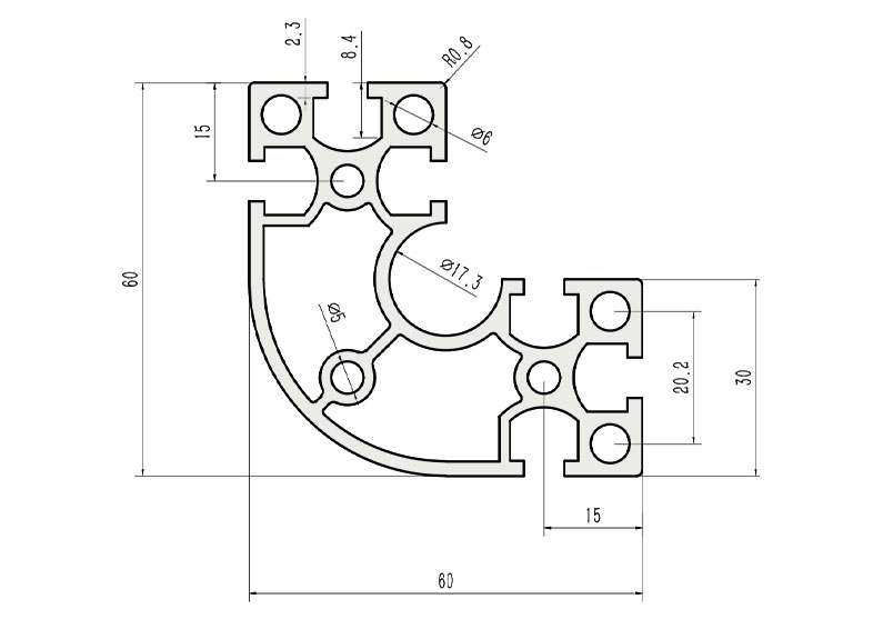 適用于應(yīng)力及強度較大的框架組合結(jié)構(gòu),它的外型采用直角過渡,表面經(jīng)過陽極氧化處理,高雅美觀并抗腐蝕,它通常采用M6X20高強度專用螺栓的內(nèi)部連接方式,堅固而又可靠,是工業(yè)框架應(yīng)用較為廣泛的型材之一。