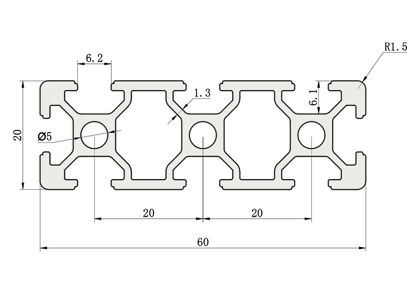 適用于應力及強度較大的框架組合結(jié)構(gòu),它的外型采用圓角過渡,表面經(jīng)過陽極氧化處理,高雅美觀并抗腐蝕,它通常采用M6X20高強度專業(yè)螺栓加彈性扣件的內(nèi)部連接方式,堅固又可靠,是工業(yè)框架應用廣泛的型材之一。