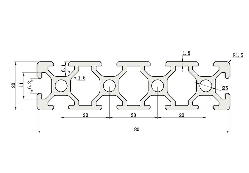 適用于應(yīng)力及強(qiáng)度較大的框架組合結(jié)構(gòu),它的外型采用圓角過(guò)渡,表面經(jīng)過(guò)陽(yáng)極氧化處理,高雅美觀并抗腐蝕,它通常采用M6X20高強(qiáng)度專業(yè)螺栓加彈性扣件的內(nèi)部連接方式,堅(jiān)固又可靠,是工業(yè)框架應(yīng)用廣泛的型材之一。