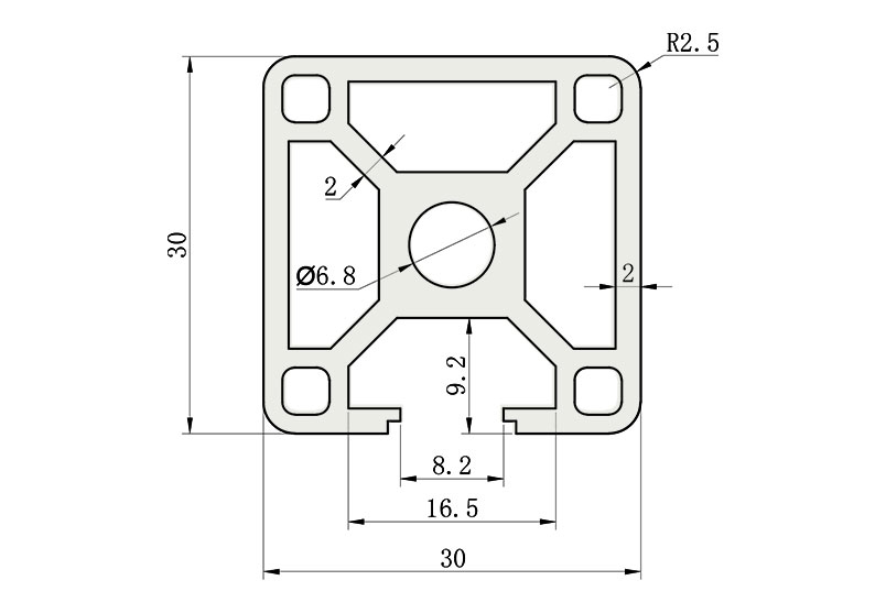 適用于應(yīng)力及強(qiáng)度較大的框架組合結(jié)構(gòu),它的外型采用圓角過渡,表面經(jīng)過陽(yáng)極氧化處理,高雅美觀并抗腐蝕,它通常采用M8X20高強(qiáng)度專用螺栓加彈性扣件的內(nèi)部連接方式,堅(jiān)固而又可靠,是工業(yè)框架應(yīng)用較為廣泛的型材之一。