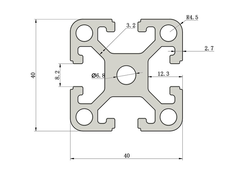 適用于應(yīng)力及強(qiáng)度較大的框架組合結(jié)構(gòu),它的外型采用圓角過渡,表面經(jīng)過陽極氧化處理,高雅美觀并抗腐蝕,它通常采用M8X20高強(qiáng)度專用螺栓加彈性扣件的內(nèi)部連接方式,堅(jiān)固而又可靠,是工業(yè)框架應(yīng)用較為廣泛的型材之一。