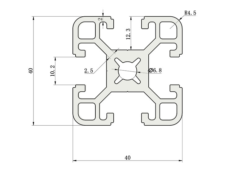 適用于應(yīng)力及強(qiáng)度較大的框架組合結(jié)構(gòu),它的外型采用圓角過(guò)渡,表面經(jīng)過(guò)陽(yáng)極氧化處理,高雅美觀并抗腐蝕,它通常采用M8X20高強(qiáng)度專用螺栓加彈性扣件的內(nèi)部連接方式,堅(jiān)固而又可靠,是工業(yè)框架應(yīng)用較為廣泛的型材之一。