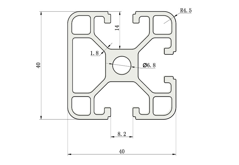 適用于應力及強度較大的框架組合結構,它的外型采用圓角過渡,表面經(jīng)過陽極氧化處理,高雅美觀并抗腐蝕,它通常采用M8X20高強度專用螺栓加彈性扣件的內(nèi)部連接方式,堅固而又可靠,是工業(yè)框架應用較為廣泛的型材之一。