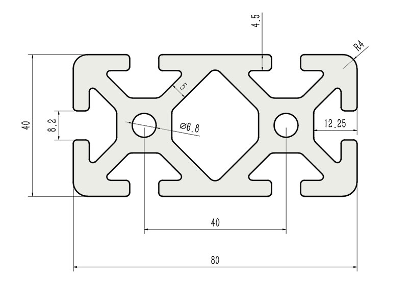 適用于應(yīng)力及強(qiáng)度較大的框架組合結(jié)構(gòu),它的外型采用圓角過(guò)渡,表面經(jīng)過(guò)陽(yáng)極氧化處理,高雅美觀并抗腐蝕,它通常采用M8X20高強(qiáng)度專(zhuān)用螺栓加彈性扣件的內(nèi)部連接方式,堅(jiān)固而又可靠,是工業(yè)框架應(yīng)用較為廣泛的型材之一。