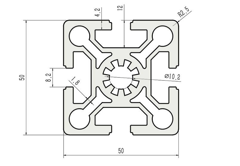 適用于應(yīng)力及強(qiáng)度較大的框架組合結(jié)構(gòu),它的外型采用圓角過渡,表面經(jīng)過陽極氧化處理,高雅美觀并抗腐蝕,它通常采用M12X30高強(qiáng)度專用螺栓加彈性扣件的內(nèi)部連接方式,堅固而又可靠,是工業(yè)框架應(yīng)用較為廣泛的型材之一。